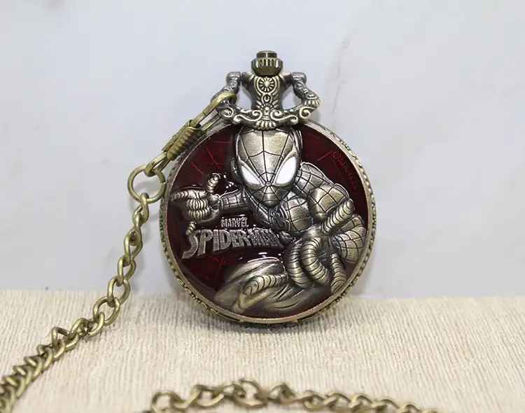 TASARIMLI KÖSTEKLİ SAATÜrün ÖzellikleriSpiderman tasarımlı köstekli saat, vintage tarzı ile koleksiyoncular ve çizgi roman severler için mükemmel bir aksesuardır. Metal gövdesi sayesinde dayanıklı yapıya sahiptir ve kabartmalı detaylarıyla dikkat çeker. Zinciri sayesinde kolay taşınabilir ve nostaljik bir dokunuş sunar. Günlük kullanım ve hediye seçeneği olarak idealdir.Paket İçeriği1 Adet Spiderman Tasarımlı Köstekli Saat