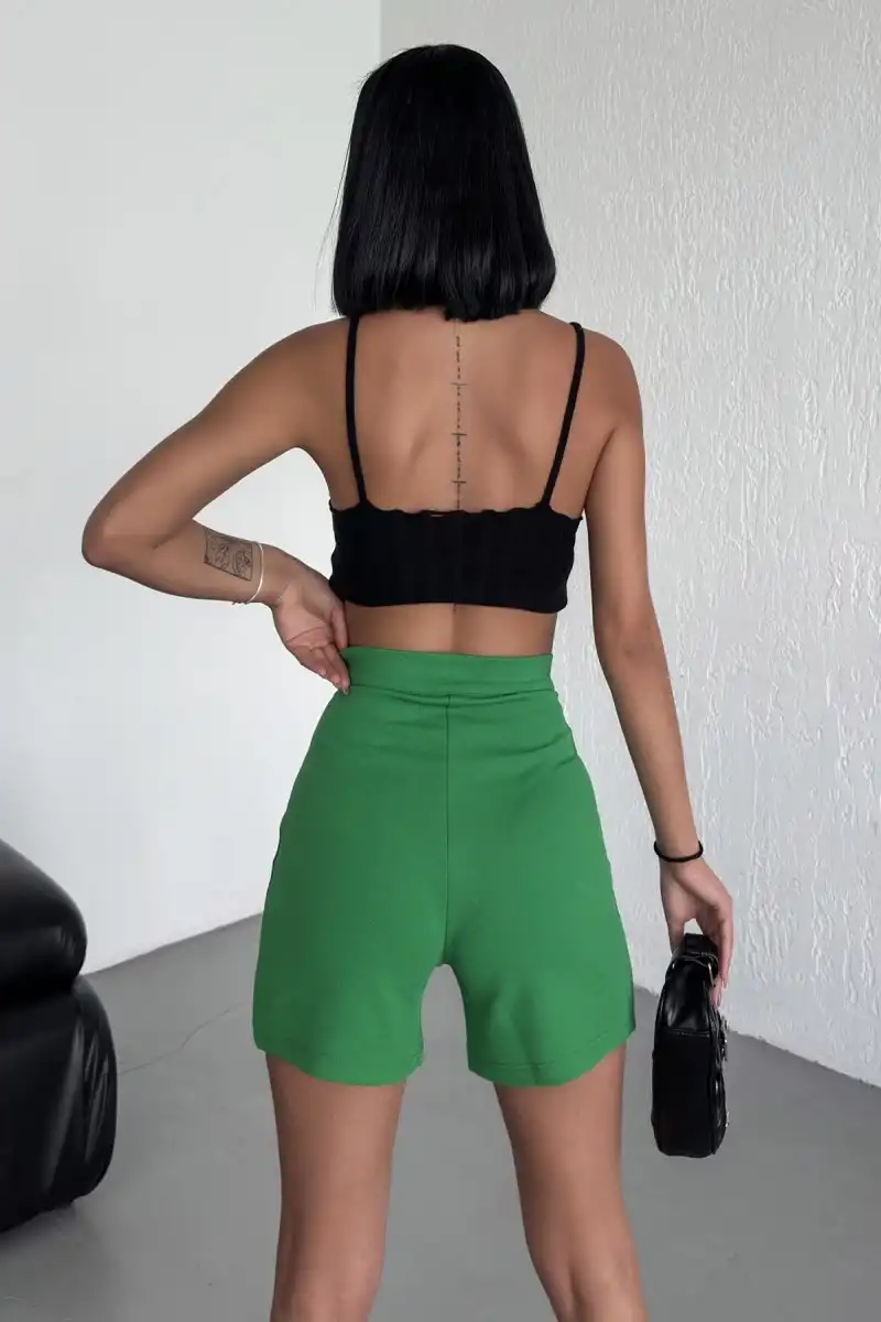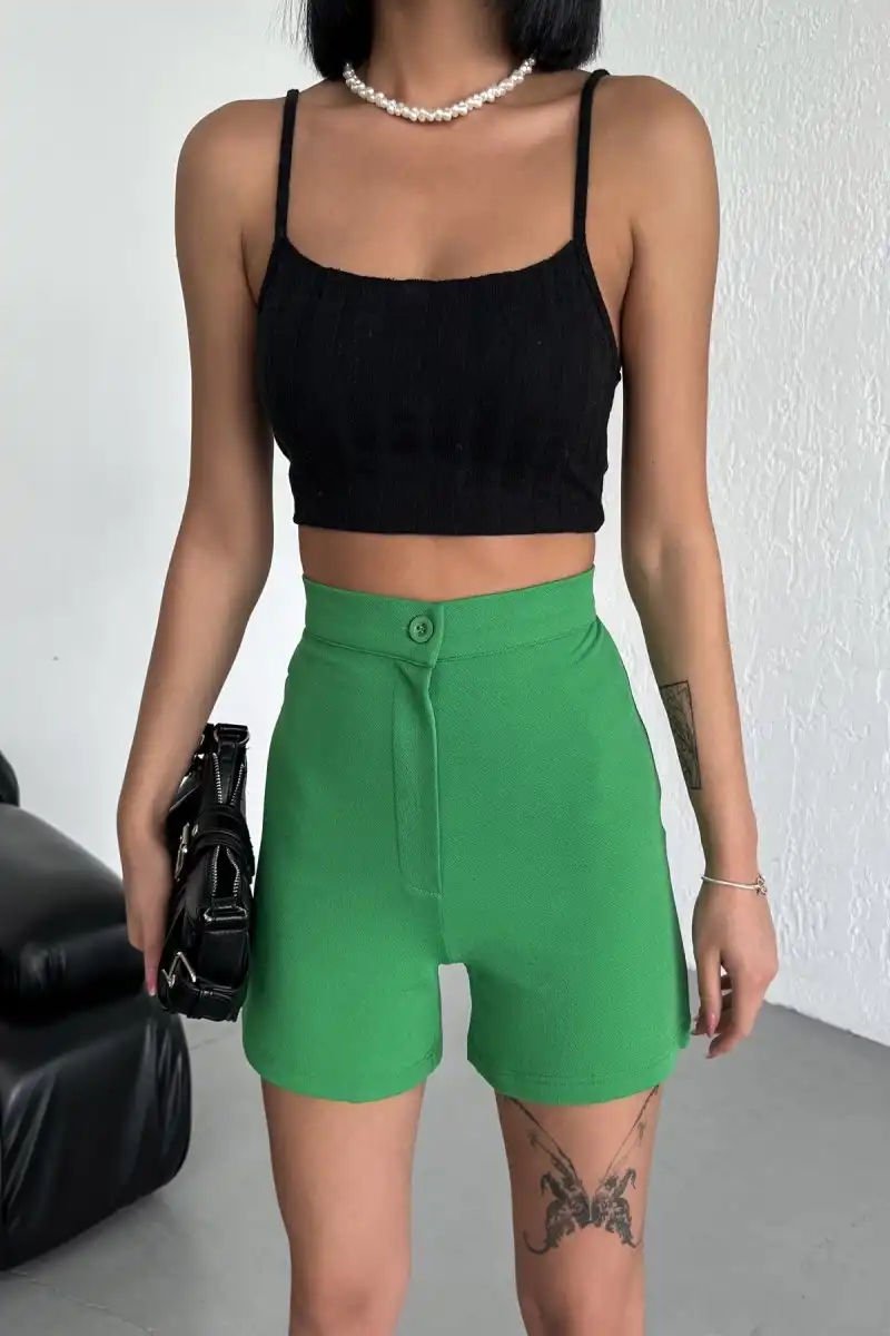 Tarz ve Rahatlığı Bir Arada Sunan Yüksek Bel Esnek Likralı Krep Şort Yeşil