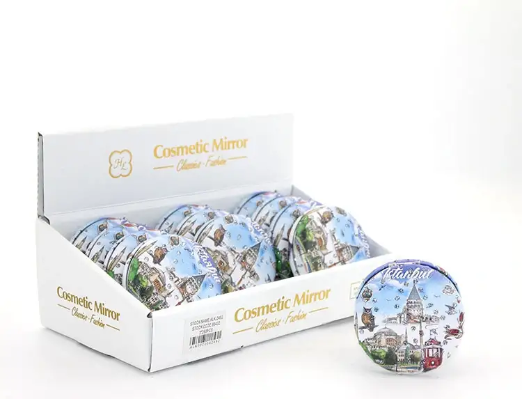 TAŞLI İSTANBUL TASARIMI EL AYNASI KALIN MODEL 5Ürün ÖzellikleriTaşlı İstanbul Tasarımı El Aynası Kalın Model 5, yuvarlak tasarımı ve İstanbul temalı figürleri ile şıklığı ve zarafeti bir arada sunar. Taşlı detaylar, aynanın yüzeyini süslerken, dayanıklı ve kalın yapısı ile uzun ömürlü kullanım sağlar. Yuvarlak tasarım, elinize rahatça oturur ve kullanım kolaylığı sağlar. İstanbul'un simgeleri ile tasarlanmış olan bu aynada, şık taş süslemeleri ve estetik detaylar ön plana çıkar. Hem günlük kullanım hem de hediye olarak mükemmel bir tercihtir. Kompakt boyutu, taşınabilir ve şık bir seçenek sunar.Paket İçeriği1 adet Taşlı İstanbul Tasarımı El Aynası Kalın Model 5.