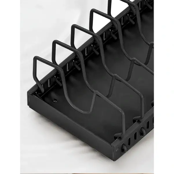 TELESKOPİK RAYLI TAVA TENCERE ORGANİZERİÜrün ÖzellikleriTeleskopik raylı tava tencere organizeri, mutfakta yer tasarrufu sağlamak ve mutfak gereçlerini düzenli şekilde yerleştirmek için ideal bir çözümdür. Dayanıklı siyah metal malzemeden üretilmiş olan ürün, elektrostatik boya kaplaması sayesinde şık bir görünüm sunar. 6 bölmeli yapısı ile tencere, tava, kapak veya tepsileri dikey şekilde yerleştirmenizi sağlar. Delme gerektirmeyen nano yapışkan bantlar sayesinde kolayca monte edilirken, istenirse vida ile de sabitlenebilir. Dolap içi, tezgah üstü veya çekmece içi kullanımlar için uygundur. Kaymaz yapısı ve sağlam gövdesi ile tavalar arasında oluşabilecek çizilmeleri ve deformasyonu önler. Farklı boyutlardaki tavalara uyum sağlayarak mutfak organizasyonunda maksimum verim sunar.Paket İçeriği1 Adet Teleskopik Raylı Tava Tencere Organizeri