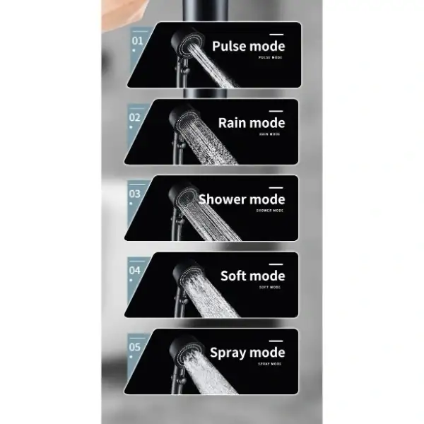TURBO DUŞ BAŞLIĞI 5 MODLUÜrün Özellikleri5 farklı su akış modu ile duş keyfinizi kişiselleştirebileceğiniz 5 Modlu Turbo Duş Başlığı, şık tasarımı ve güçlü su basıncıyla dikkat çeker. Pulse, Rain, Shower, Soft ve Spray modları sayesinde hem masaj etkisi yaratır hem de su tasarrufu sağlar. Dahili turbo pervane sistemi suyun basıncını artırarak daha verimli bir duş deneyimi sunar. Kolay monte edilebilir yapısı sayesinde standart duş hortumlarına uyum sağlar. Modern siyah gövde ve altın detaylı tasarımı ile banyo dekorasyonuna estetik bir dokunuş katar.Paket İçeriği1 adet Turbo Duş Başlığı 5 Modlu