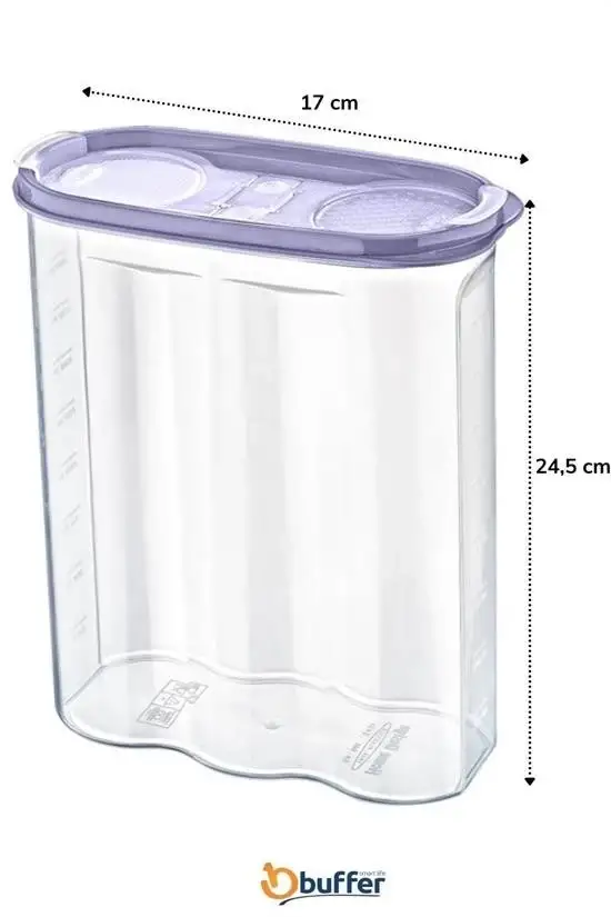 Ürün paket içeriği: 1 adet 2 Kapaklı Ölçekli Erzak Kuru Gıda Saklama Kutusu Kabı 2,4 Litre