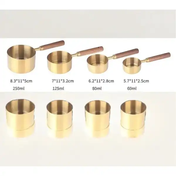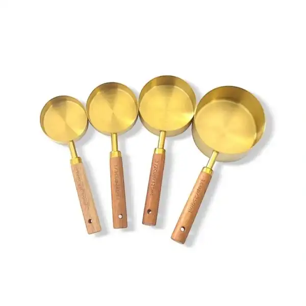 4'LÜ AHŞAP SAPLI ÖLÇÜ KAŞIĞIÜrün ÖzellikleriBu 4'lü ahşap saplı ölçü kaşığı seti, mutfakta ölçü almak için ideal bir çözümdür. Metal kısmı şık altın rengindedir, ahşap sapları ise ergonomik olup rahat bir kullanım sağlar. Farklı boyutlarda 4 ölçü kaşığından oluşan bu set, her türlü yemek tarifinde doğru ölçüleri almanıza yardımcı olur. Estetik tasarımı, mutfakta şıklık yaratır. Her bir kaşık, dayanıklı malzemelerle üretilmiştir ve uzun süreli kullanım için uygundur.Paket İçeriği4 Adet Ahşap Saplı Ölçü Kaşığı