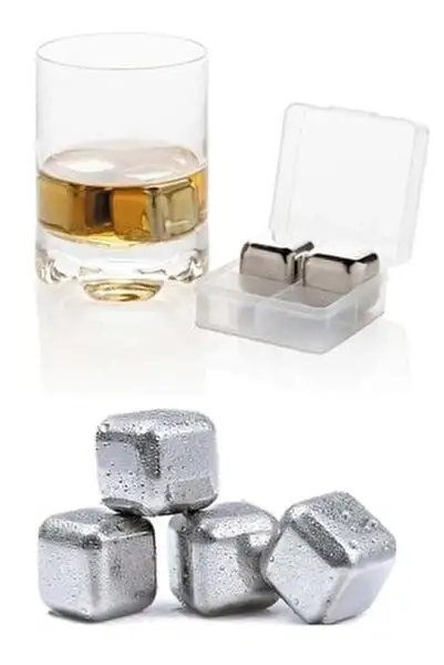 4'lü Çelik Metal Kaplama Viski Taşı Soğutma Buz Küpü