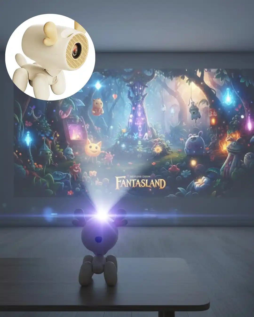 Geyik tasarımlı akıllı projeksiyon cihazı, es görünümü ve güçlü teknik özellikleri bir araya getiren modern bir ev eğlence çözümüdür. Sevimli ve kompakt form faktörü sayesinde çocuk odasından salona kadar her ortama uyum sağlar. Döner başlık tasarımı ve entegre stand yapısı sayesinde farklı açılarda konumlandırma imkanı sunar. Bu özellik, projeksiyonu duvara veya tavana kolayca yönlendirmeyi mümkün kılar.4K içerik desteği sayesinde yüksek çözünürlüklü medya dosyalarını sorunsuz şekilde oynatabilir. 500 ANSI lümen parlaklık değeri, net ve canlı görüntü performansı sunar. Bu sayede hem karanlık hem de yarı loş ortamlarda tatmin edici bir görüntü kalitesi elde edilir. Renkler canlı, detaylar keskin ve kontrast seviyesi dengelidir. Film, animasyon ve dizi içeriklerinde sürükleyici bir deneyim sağlar.Android tabanlı akıllı sistem sayesinde Netflix, YouTube ve benzeri popüler uygulamalara doğrudan erişim mümkündür. Harici bir medya oynatıcıya ihtiyaç duymadan internet üzerinden içerik izleyebilirsiniz. Dahili WiFi ve Bluetooth bağlantı özellikleri kablosuz kullanım kolaylığı sağlar. Ayrıca HDMI, USB ve TF kart girişleri ile geniş bağlantı seçenekleri sunar.36W gücünde dahili hoparlör sistemi ve Dolby Audio desteği sayesinde güçlü, temiz ve oda dolduran ses performansı sunar. Ekstra hoparlör ihtiyacı olmadan film ve müzik keyfi yaşatır.