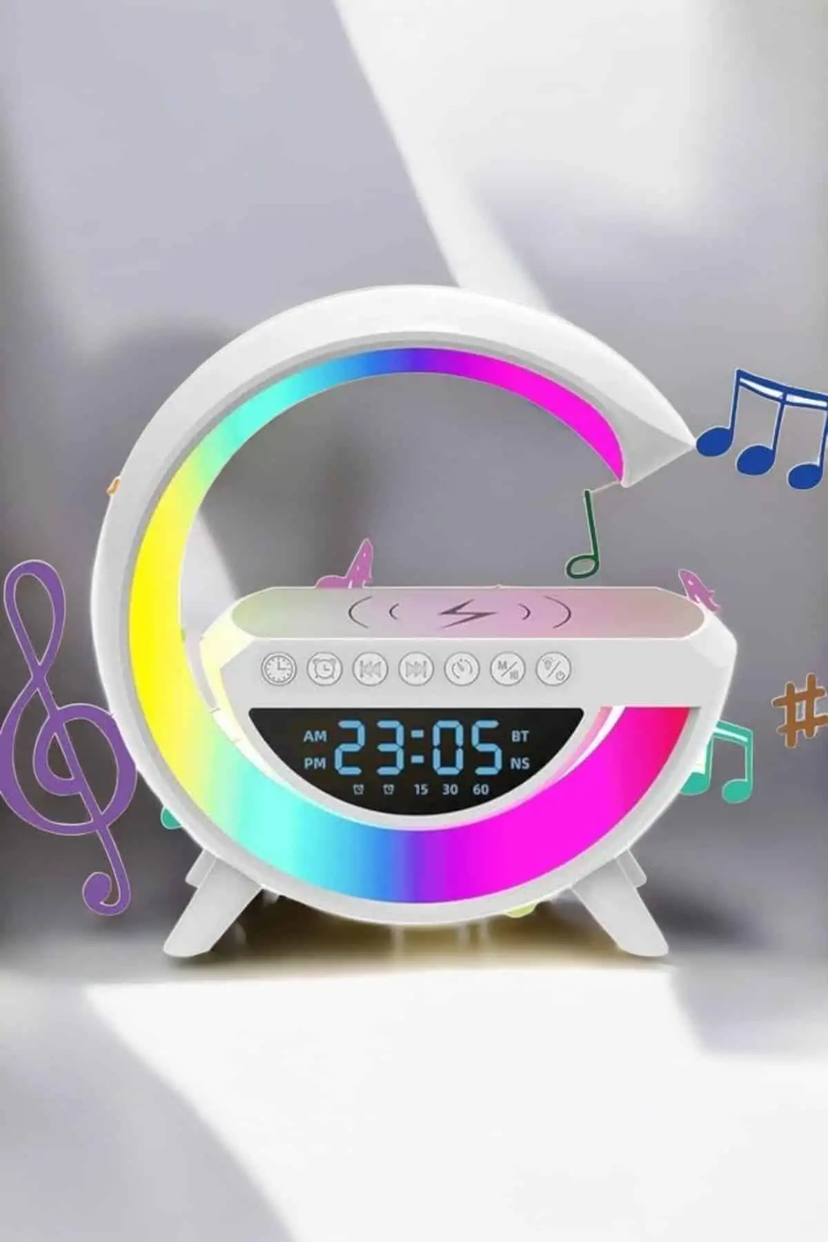 Kablosuz Şarj Özellikli Bluetooth Hoparlör Gece Lambası, şık tasarımı ve birden fazla işlevi bir arada sunarak modern yaşam tarzınıza mükemmel bir uyum sağlar. Bu cihaz, yüksek kaliteli LED gece lambası özelliği ile ortamınıza sıcak beyaz ışıktan renkli RGB aydınlatmalara kadar farklı ışık seçenekleri sunar. Ayarlanabilir parlaklık ayarları sayesinde hem bir çalışma lambası hem de dinlendirici bir gece lambası olarak kullanılabilir. Kompakt boyutları ve hafif yapısı ile kolay taşınabilir olan bu ürün, yalnızca evde değil, ofiste veya seyahatlerde de kullanılabilir. Evinize stil ve işlevsellik katmakla kalmaz, aynı zamanda başucu arkadaşı olarak günlük hayatınızı kolaylaştırır.