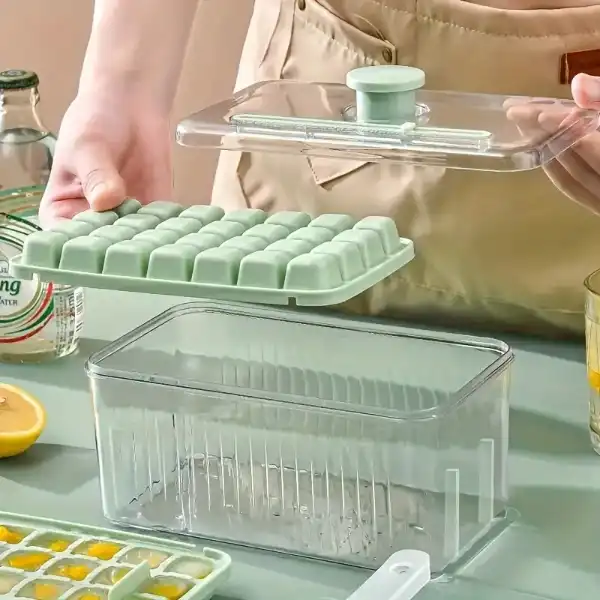 BASMALI HAZNELİ BUZLUKÜrün ÖzellikleriBasmalı hazneli buzluk, mutfakta kullanım kolaylığı sağlamak için özel olarak tasarlanmış pratik bir üründür. Dayanıklı ve BPA içermeyen kaliteli plastik malzemeden üretilmiş olup, gıda ile temasa uygundur. Ürün iki ayrı kalıptan oluşur ve tek seferde toplamda 56 adet buz küpü hazırlama kapasitesine sahiptir. Şeffaf kapaklı tasarımı sayesinde buzların durumu kolayca kontrol edilebilir. Üzerinde yer alan basmalı mekanizma sayesinde buz küplerini elinizi ıslatmadan ve kırma işlemiyle uğraşmadan zahmetsizce çıkarmanıza olanak tanır. Buzları temiz ve hijyenik bir şekilde saklamanız için özel haznesi mevcuttur. Kompakt boyutu sayesinde buzdolabında fazla yer kaplamaz ve kolay temizlenebilir yapısıyla pratik bir kullanım sunar.Ürün ölçüleri 19 cm uzunluk, 11,6 cm genişlik ve 8 cm yükseklikten oluşmaktadır. Fonksiyonel yapısı ile mutfak düzeninizi bozmadan, buz hazırlama sürecinizi hızlı ve hijyenik hale getirir.Paket İçeriği1 adet basmalı hazneli buzluk