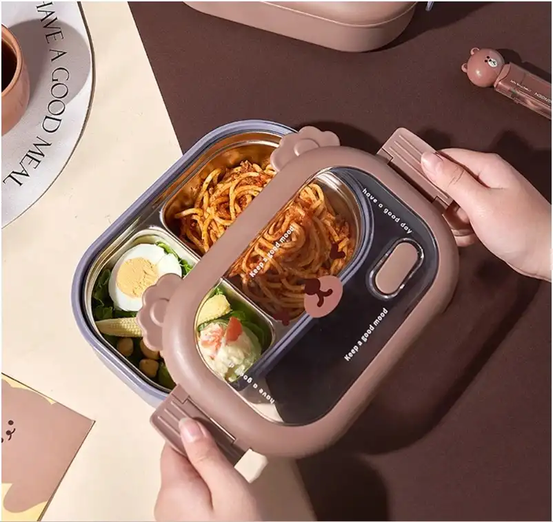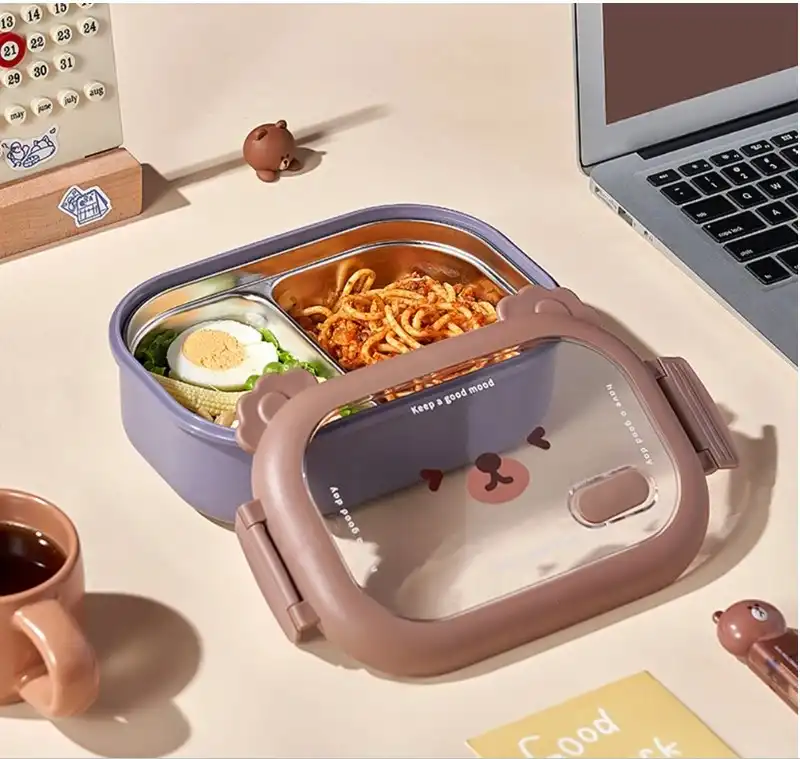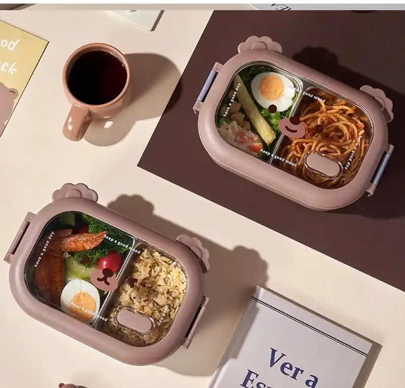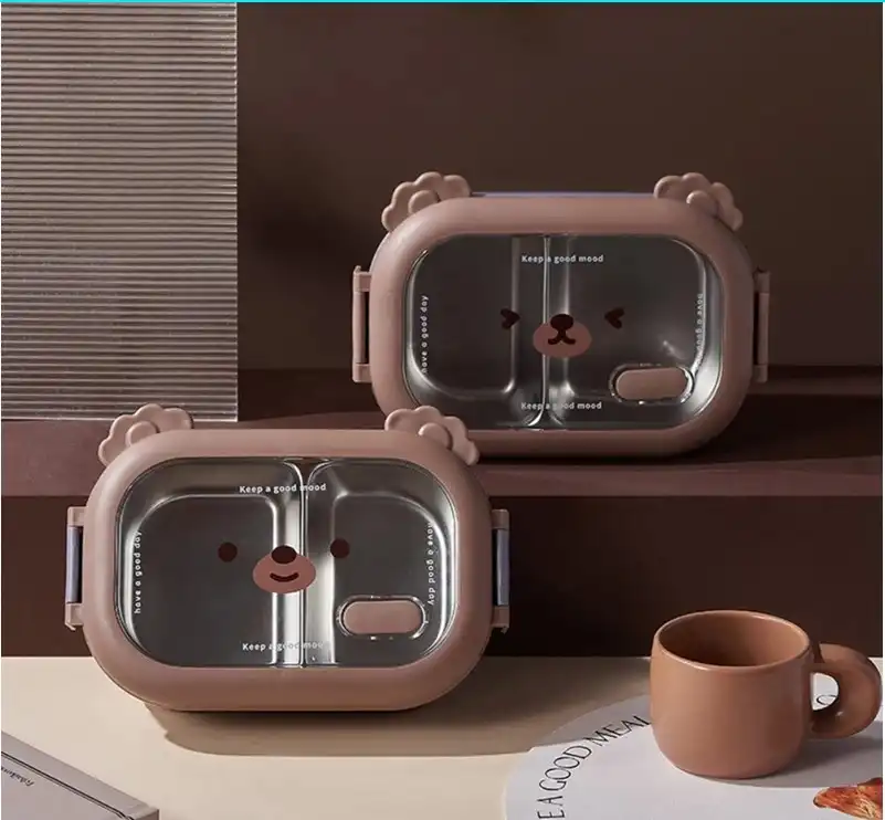 Bölmeli Sevimli Hayvan Tasarımlı Paslanmaz Çelik Yemek KutusuGörselde, sevimli bir hayvan yüzü tasarımıyla öne çıkan, bölmeli paslanmaz çelik yemek kutuları bulunuyor. Bu tür ürünler, çocuklar için özellikle çekici ve pratik öğle yemeği saklama çözümleri sunar.Ürün Açıklaması:Bu sevimli hayvan tasarımlı paslanmaz çelik yemek kutusu, çocukların öğle yemeklerini güvenle taşıması ve tüketmesi için mükemmel bir seçimdir. İçerisindeki iki ayrı bölme sayesinde farklı yiyecekleri bir arada tutmanıza olanak tanır. 304 kalite paslanmaz çelikten üretilmiştir ve sağlıklı bir yemek saklama deneyimi sunar. Sızdırmaz kapağı sayesinde yiyeceklerinizin dökülmesini önler ve çocuğunuzun çantasında güvenle taşınabilir. Şirin hayvan yüzü tasarımı ile çocukların favorisi olacak bu yemek kutusu, hem pratik hem de eğlencelidir.Paket İçeriği:1 Adet Bölmeli Sevimli Hayvan Tasarımlı Paslanmaz Çelik Yemek Kutusu