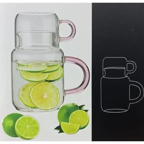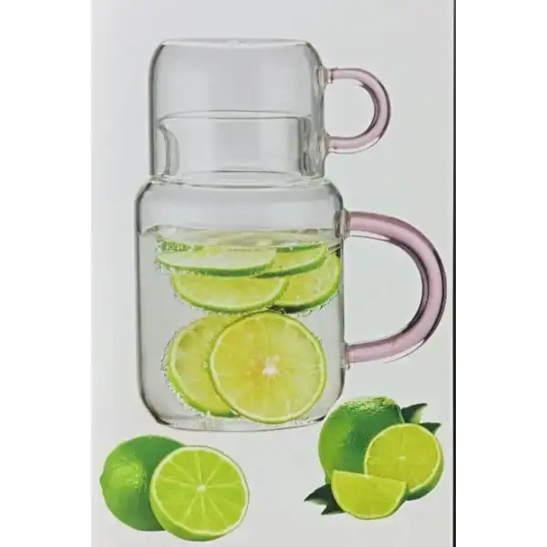 CAM BARDAK SÜRAHIÜrün ÖzellikleriCam Bardak Sürahi, hem bardak hem de sürahi olarak kullanılabilen çok amaçlı bir tasarıma sahiptir. Üst kısmında yer alan bardak, alt kısmı ise sürahi olarak kullanılmaktadır. Şeffaf cam gövdesi ve renkli kulp detayı ile modern bir tasarıma sahiptir. Saplı tasarımı sayesinde tutuş kolaylığı sağlar. 690 ml kapasiteye sahiptir ve su, meyve suyu, limonata gibi içecekleri servis etmek için idealdir. Mutfakta veya ofiste pratik kullanım için şık bir çözümdür.Ürün farklı renklerde mevcuttur ve stok durumuna göre gönderilmektedir.Paket İçeriği1 Adet Cam Bardak Sürahi