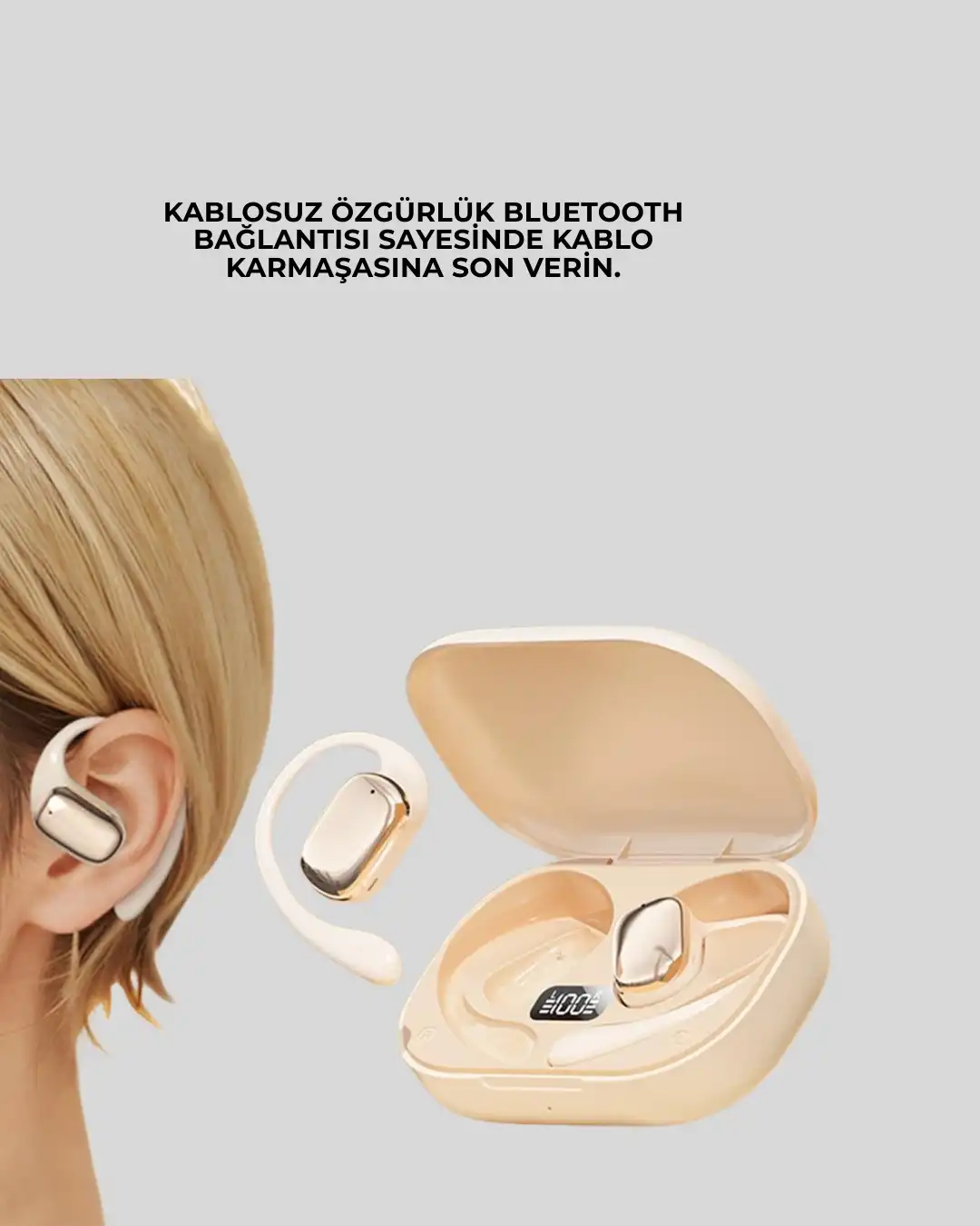 Modern tasarımıyla öne çıkan Bluetooth kulaklık, 4 saate kadar pil ömrü ve hızlı şarj özelliğiyle kullanım kolaylığı sağlar. Akıllı LED ekran sayesinde pil durumunu anlık olarak takip edebilir, stabil bağlantısı ile kesintisiz ses deneyimi yaşayabilirsiniz. Hafif ve taşınabilir yapısı sayesinde gün boyu yanınızda taşıyabileceğiniz ideal bir kulaklıktır.