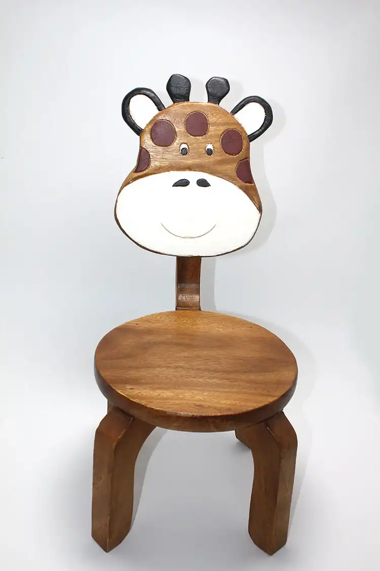ÇOCUK SANDALYESİÜrün ÖzellikleriÇocuk sandalyesi, ahşap tasarımı ve sevimli figürleriyle çocukların kullanımına uygun olarak üretilmiştir. Zürafa, maymun, aslan ve fil gibi eğlenceli hayvan figürleri ile çocukların ilgisini çeker ve eğlenceli bir oturma alanı sunar. Dayanıklı ahşap malzemesi sayesinde sağlam ve uzun ömürlüdür. 54x28 boyutundadır,  hafif yapısı ile kolay taşınabilir ve farklı alanlarda rahatlıkla kullanılabilir. Çocukların odası, oyun alanları ve anaokulları için idealdir.Paket İçeriği1 Adet Ahşap Çocuk Sandalyesi