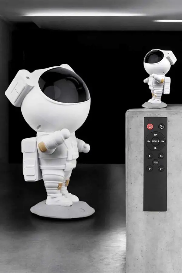 Hayal gücünüzü harekete geçiren Astronot Projeksiyon Lambası, benzersiz bir yıldız ve nebula deneyimi sunuyor. Telefonunuzla kolayca eşleşen Bluetooth özelliği sayesinde müzik dinleyebilir veya cihazın içerisinde yer alan kuş cıvıltıları, dalga sesleri, şömine ateşi ve uyku müzikleriyle rahatlatıcı bir atmosfer yaratabilirsiniz. 120x113x228 mm boyutları ve 655g ağırlığıyla kompakt ve hafif bir tasarıma sahip olan bu lamba, her odaya uyum sağlar.Nebula ve yıldız projeksiyonu aynı anda veya ayrı ayrı kullanılabilir. Hız ve parlaklık ayarları ile manzarayı tam olarak istediğiniz gibi özelleştirebilirsiniz. 45 dakika ve 90 dakika olmak üzere iki zamanlama modu bulunan cihaz, uyku öncesi kullanımlar için idealdir. Dekorasyon olarak da kullanılabilen lamba, şık ve modern bir görünüm sunar. Paket içeriğinde astronot projeksiyon lambası, taban, USB güç kablosu ve uzaktan kumanda bulunmaktadır (pil dahil değildir).