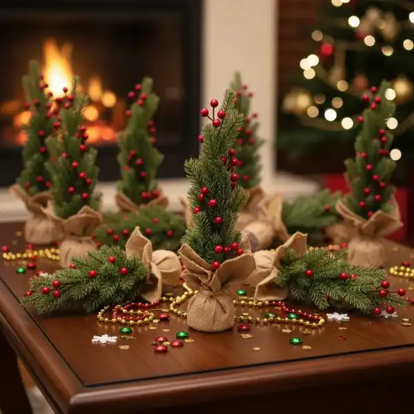 DEKORATİF MİNİ YAPAY KOKİNA SÜSÜrün ÖzellikleriDekoratif mini yapay kokina, 45 cm boyutuyla masa üstü dekorasyonlarda ve küçük alanlarda şık bir yeni yıl atmosferi oluşturmak için ideal bir üründür. Canlı yeşil çam dallarıyla birlikte tasarlanan kırmızı kokina detayları, alt kısmındaki keten kaplı saksı görünümü ise ağaca rustik ve sıcak bir tarz kazandırır. Dayanıklı yapay malzemeden üretildiği için her yıl tekrar kullanılabilir, şeklini uzun süre korur ve dökülme yapmaz. Ev, ofis, vitrin, kafe veya hediye amaçlı kullanımlarda dekoratif bir tamamlayıcı olarak öne çıkar.Paket İçeriği1 Adet Dekoratif Mini Yapay Kokina Süs