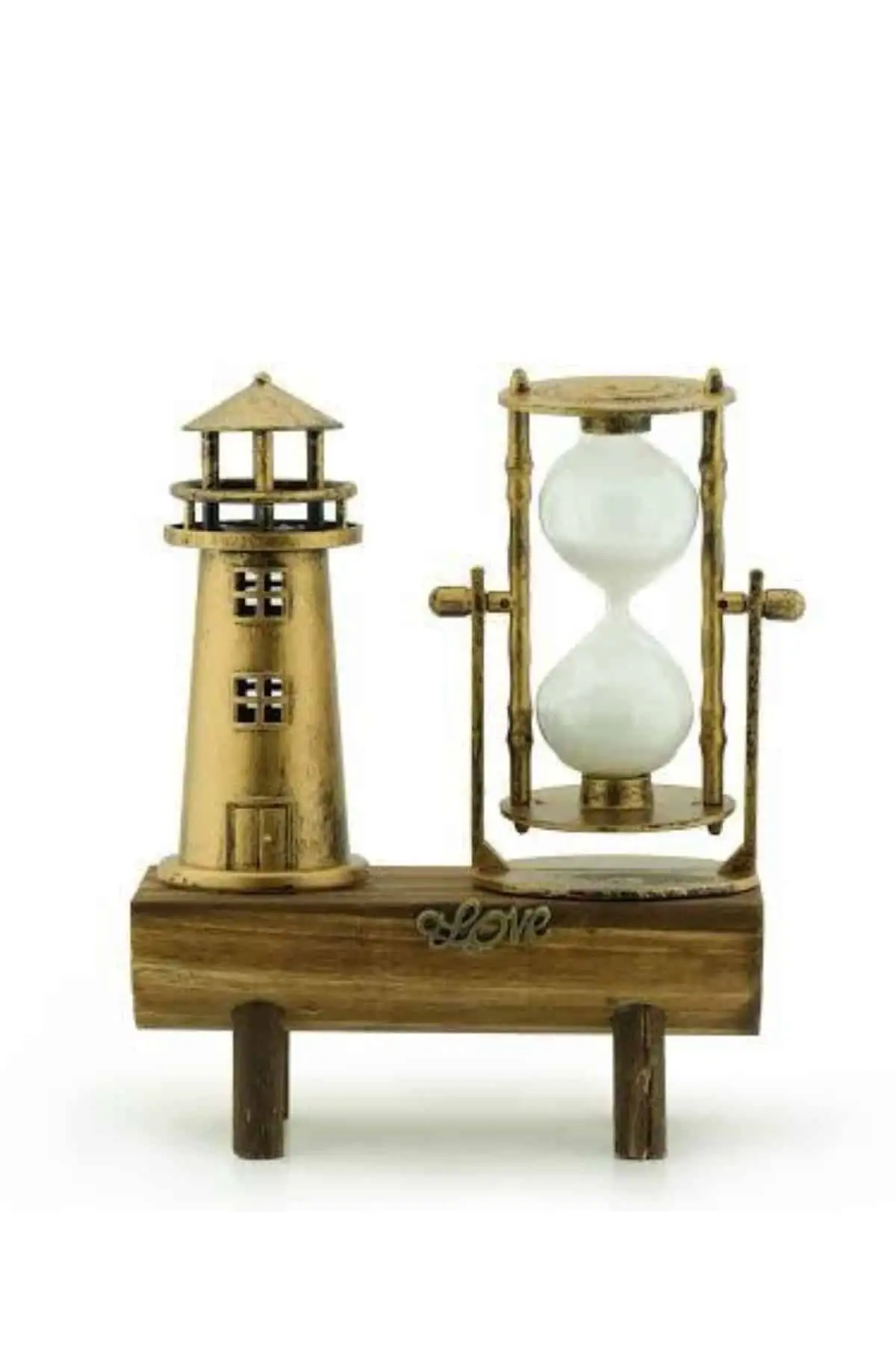 Deniz Feneri Kum Saati Ahşap Görünümlü Vintage Tarz Biblo