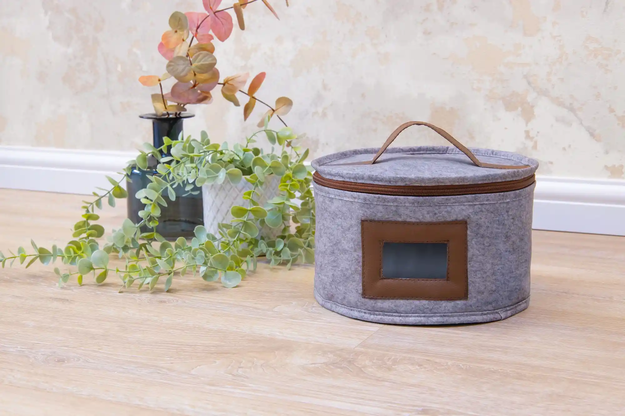 Deri Şeritli Pencereli Yuvarlak Çok Amaçlı Düzenleyici Organizer Kutu Keçe Çanta (Mini)