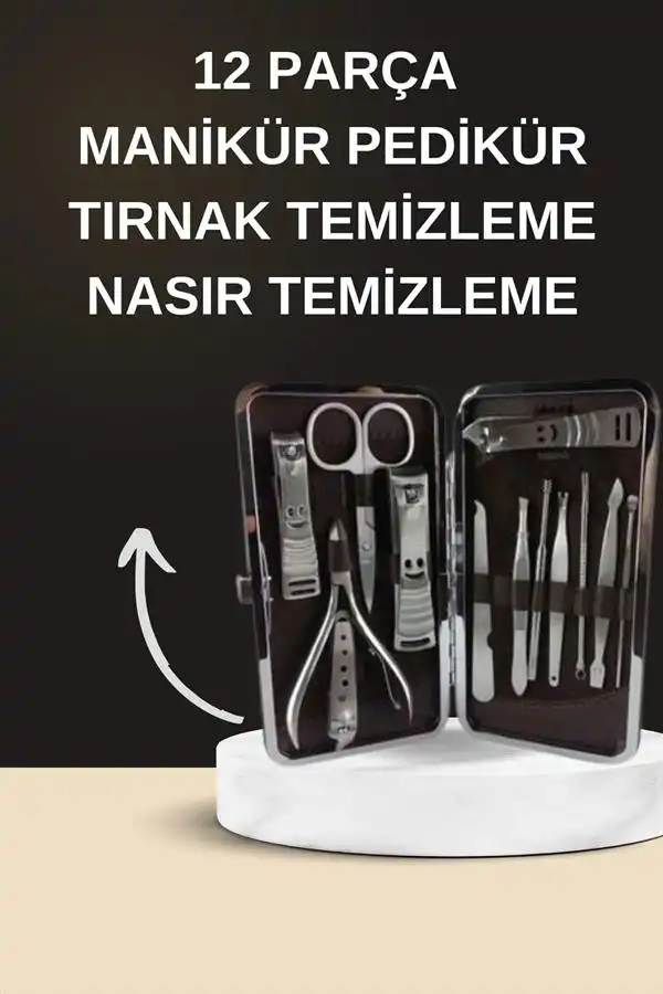 • Elektrikli Manikür Pedikür Seti İkili Set 12 Parça Tırnak Bakımı Törpü Protez Çıkarma