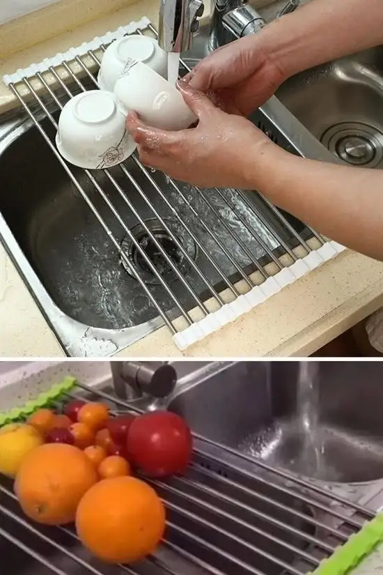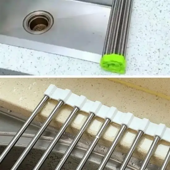 Evye Üstü Katlanır Nihale Paslanmaz Çelik Pratik Sebze Meyve Bulaşık Kurutma Süzgeci