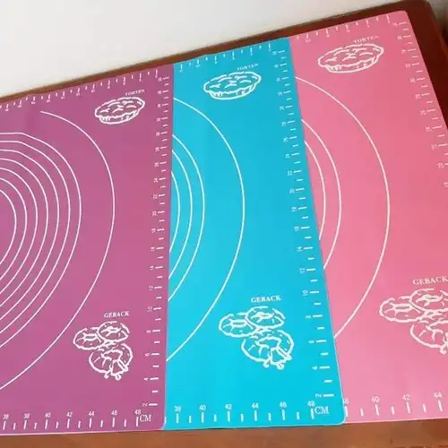 HAMUR AÇMA MATIBüyük boy (50cm*40cm) Silikon Hamur Açma Matı.Silpat üzerinde şeker hamuruveya normal hamurlarınızı kolaylıkla açabilir hamurunuzun zemine yapışarakuzamasını önleyebilirsiniz.Silikon hamur açma silpatı üzerinde yapışmadan hamur açabilir şeker hamuruile modellemeler yapabilirsiniz.Silikon Şeker hamuru açma örtülerinin alt yüzeyi kaydırmaz özelliğisayesinde serdiğiniz zemini tutarak hamur açma esnasında sağa,sola kaymayapmaz.Silikon silpat üzerindeki ölçüler net olup hamurunuzun ebetını ayarlamanızayardımcı olur.Silikon Şeker hamuru Örtüleri üzerinde metal kesiciler kullanılmamasıönerilmektedir.Şeker hamuru silpatları gıda uyumlu silikon malzemeden üretilerek insansağlığına zarar vermez.Silikon mat bulaşık makinesinde yıkanabilir özelliğe sahiptir. Paket İçeriği1 Adet 50*40cm hamur açma matı.