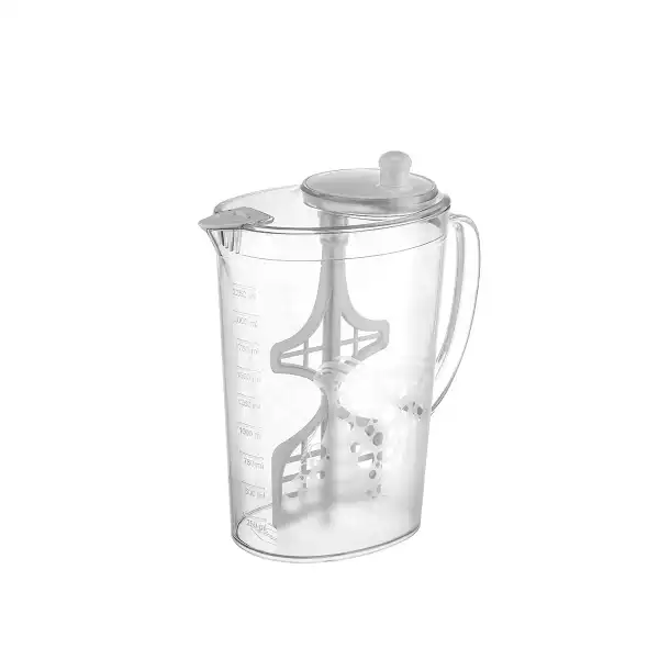 KARIŞTIRICILI SÜRAHİ Ürün ÖzellikleriKarıştırıcılı Sürahi, içecek hazırlama sürecini tek bir kapta birleştiren yenilikçi ve fonksiyonel bir mutfak gerecidir. Ürünün en dikkat çekici özelliği olan entegre karıştırma atı, kapağı açmadan ayran, limonata veya toz içecekleri saniyeler içinde homojen hale getirmenizi sağlar. Gövde üzerinde yer alan mililitre bazlı ölçü çizgileri, tariflerinizi hazırlarken tam kıvamında sonuçlar almanıza yardımcı olur. 2,25 litrelik geniş hacmi ve kristal berraklığındaki şeffaf tasarımı ile hem hazırlık hem de servis aşamasında büyük kolaylık sunar. Ergonomik tutma sapı ve damlatma yapmayan ağız yapısı, güvenli ve temiz bir kullanım deneyimi sağlar. Yüksek kaliteli, sağlığa uygun plastik materyalden üretilen bu karıştırıcılı sürahi, dayanıklı yapısı ve şık formuyla modern mutfakların en pratik yardımcılarından biri olmaya adaydır.Ürün Teknik ÖzellikleriÖzellikAçıklamaÜrün AdıKarıştırıcılı SürahiHacim2250 ml (2,25 Litre)RenkŞeffaf Gövde - Beyaz Kapak ve KarıştırıcıMalzemeYüksek Kaliteli Plastik (BPA İçermez)FonksiyonEntegre Karıştırma Mekanizması ve Ölçü GöstergesiTasarımErgonomik Kulp - Modern Oval FormKullanım Alanıİçecek Hazırlama, Karıştırma ve ServisPaket İçeriği1 Adet Karıştırıcılı Sürahi