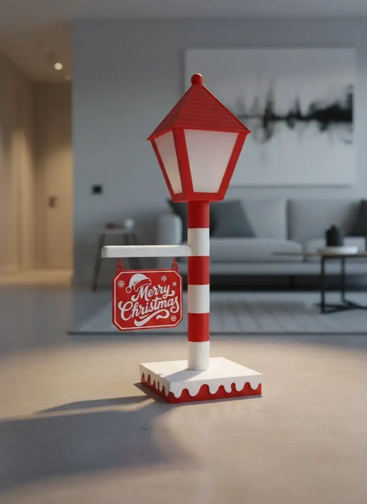 Klasik Noel tasarımından ilham alan Yılbaşı Tabelalı Dekoratif Lamba, kırmızı şapkalı direk formu ve asılı “Merry Christmas” tabelasıyla yılbaşı süslemelerine nostaljik bir dokunuş katar. 60 cm yüksekliği sayesinde bulunduğu ortamda hemen fark edilir ve dekorasyonun odak noktası haline gelir.Atlı yapısı sayesinde istenirse daha yüksek konumlandırılabilir, masa üstü, yer dekoru veya vitrin önü kullanımına uygundur. Yumuşak aydınlatması sayesinde ortamı boğmadan sıcak bir ışık yayar. Özellikle salon, antre, mağaza vitrini ve yılbaşı konseptli alanlarda şık bir görünüm sağlar.Yılbaşı dekorasyonunu tamamlamak isteyenler için hem dekoratif hem de aydınlatıcı bir üründür.