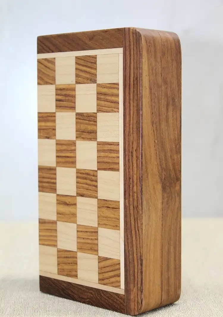 Özel Vernikli Mıknatıs Taşlı Ahşap Katlanabilir Kutulu Satranç Oyunu 12.5 Cm G220