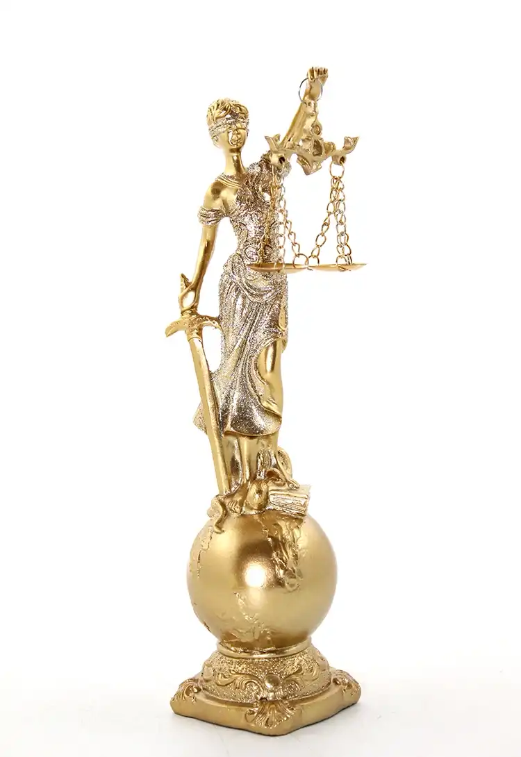 POLYESTER ADALET BİBLOSU MODEL 1Ürün ÖzellikleriPolyester Adalet Biblosu, adaletin simgesi olan kanatlı terazi ve kılıç figürünü barındıran şık bir tasarımdır. Alt kısmında yer alan dünya figürüyle anlamını pekiştiren bu biblo, 30x12 cm boyutlarındadır. Altın ve gümüş tonlarında zarif bir işçilikle üretilen figür, ev veya ofis dekorasyonlarına anlamlı bir dokunuş ekler. Yüksek kaliteli polyester malzeme ile üretilen bu figür, dayanıklılığı ve estetiğiyle dikkat çeker.Paket İçeriği1 Adet Polyester Adalet Biblosu Model 1
