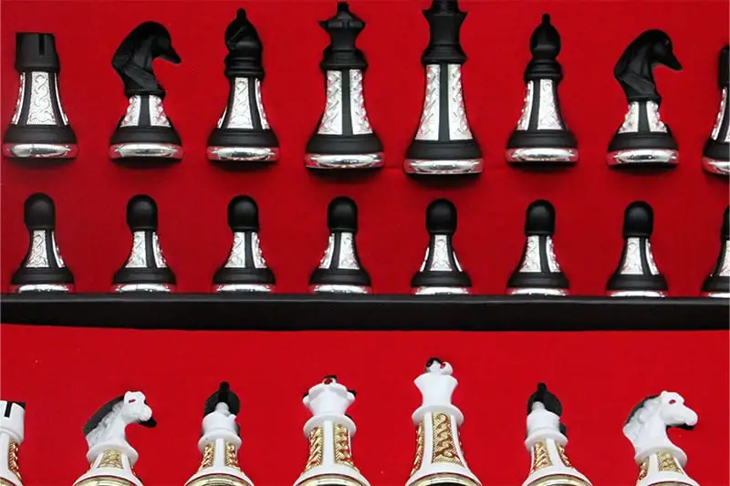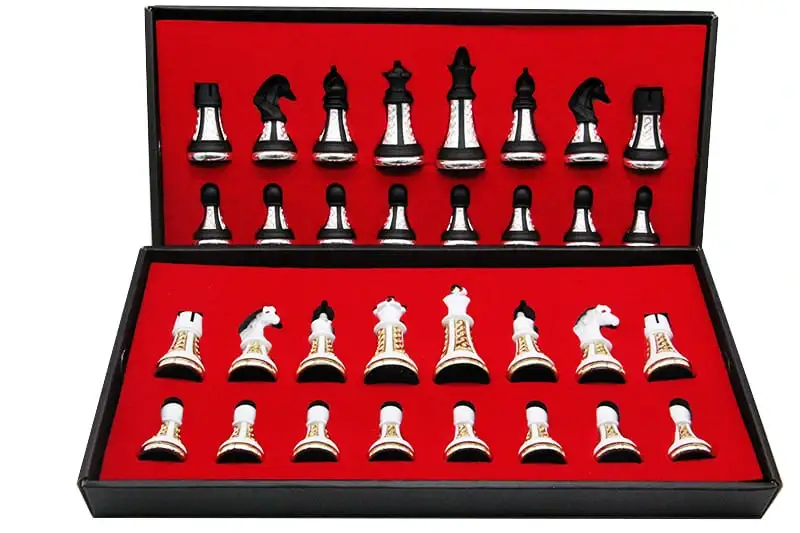 Satranç Seti Köşeli Desenli Zamak Tablalı