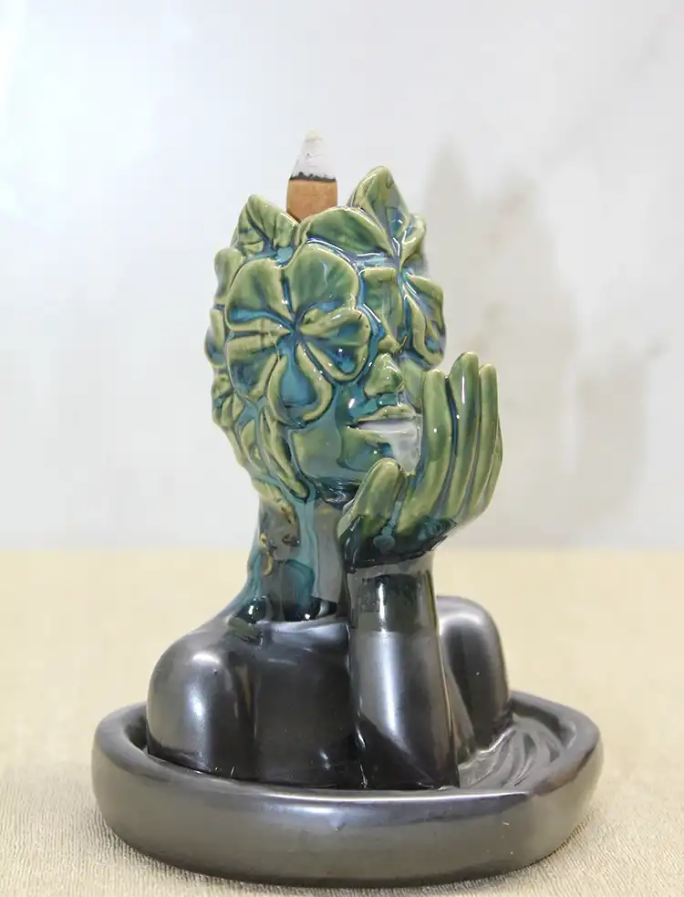 SERAMİK DOĞANIN YÜZÜ GERİ AKIŞ TÜTSÜLÜKÜrün ÖzellikleriSeramik Doğanın Yüzü Geri Akış Tütsülük, doğayı andıran özel yüz tasarımı ve etkileyici detaylarıyla hem dekoratif hem de aromaterapi amaçlı kullanıma uygun bir üründür. 15x10 cm boyutundaki geniş yapısı sayesinde bulunduğu ortama güçlü bir görsel etki katar. Seramik malzemeden üretilmiş olması yüksek ısı dayanımı, sağlamlık ve uzun ömür sunar. Geri akış özelliği sayesinde konik tütsü dumanı yüz ve hatlardan aşağı doğru süzülerek doğal bir şelale etkisi oluşturur ve izleyene huzur veren bir atmosfer yaratır. Hem yaşam alanlarında hem de meditasyon ve yoga ortamlarında sakinlik arayanlar için ideal bir tamamlayıcı dekorasyon ürünüdür. Kullanımı kolaydır ve görsel olarak etkileyici bir tütsü deneyimi sunar.Paket İçeriği1 adet Seramik Doğanın Yüzü Geri Akış Tütsülük