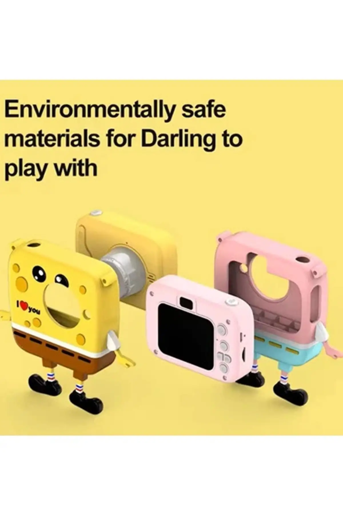 Sünger Bob Tasarımlı Yeni Nesil Çocuk Dijital Mini Fotoğraf Makinesi Çift Kamera