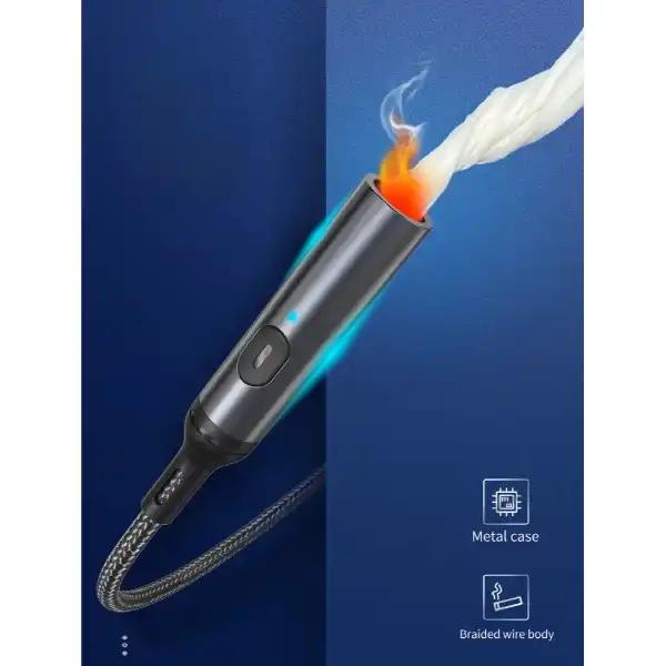 TYPE-C KABLOLU ELEKTRİKLİ ÇAKMAKÜrün ÖzellikleriType-C Kablolu Elektrikli Çakmak, yenilikçi tasarımı ve pratik kullanımıyla geleneksel çakmaklara modern bir alternatif sunar. Ürün dokunmatik veya tuşla çalışmaz; yalnızca Type-C bağlantısı sayesinde güç alır. Type-C ucu telefona takıldıktan sonra çakmak ucuna üfleyerek aktif hale gelir. Bu üfleme hareketiyle çakmak çalışır ve kısa bir süre sonra kendiliğinden söner. Tekrar kullanmak için aynı işlemi uygulamak yeterlidir.Rüzgârdan etkilenmeyen ateşleme sistemi sayesinde açık alanlarda bile güvenle kullanılabilir. Kompakt boyutu ve hafif yapısı ile taşıması kolaydır. Evde, araçta, kampta veya dış mekânda pratik bir kullanım sağlar. Şık metalik gövdesi uzun ömürlü bir kullanım deneyimi sunar.Paket İçeriği1 adet Type-C kablolu elektrikli çakmak