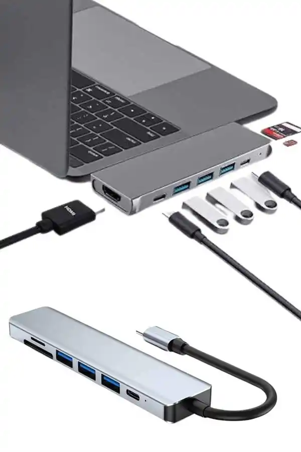 Usb Type-c Hub Dönüştürücü Çevirici Çoklayıcı Macbook Çevirici 8 Portlu