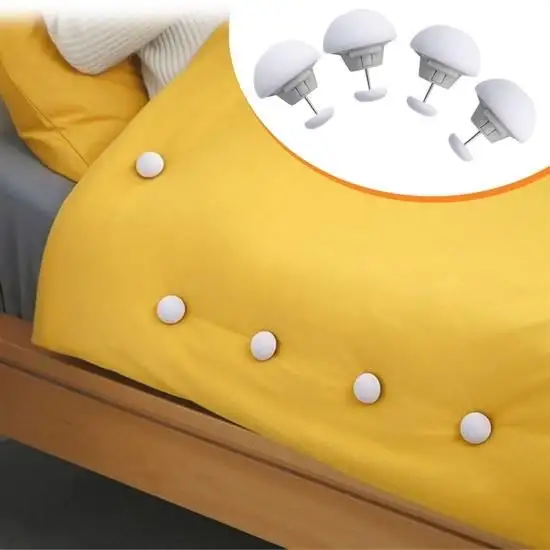 Yorgan Kılıfı ve Çarşaf Sabitleme: Mantar Model Yorgan Kılıfı ve Çarşaf Tutucu Sabitleyici, yatağınızdaki yorgan kılıfı ve çarşafları sabitlemek için etkili bir çözümdür. Bu ürün sayesinde yatağınızın düzenini koruyabilir ve yorgan kılıfı ile çarşafların kaymasını önleyebilirsiniz.