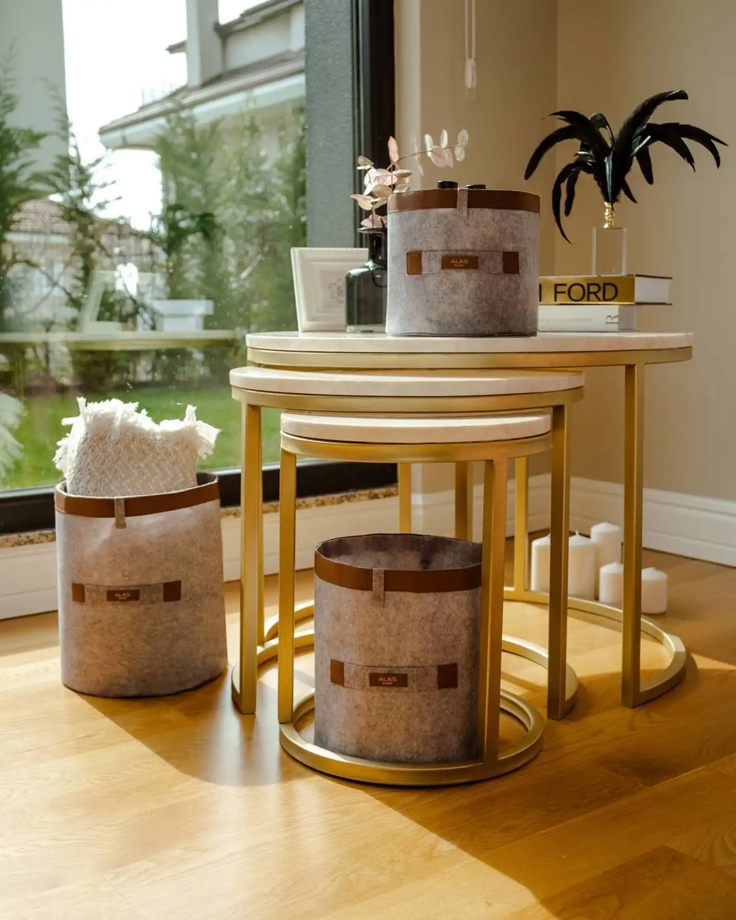 Deri Şeritli Yuvarlak Çok Amaçlı Düzenleyici Organizer Kutu Keçe Sepet (maxi) 03815