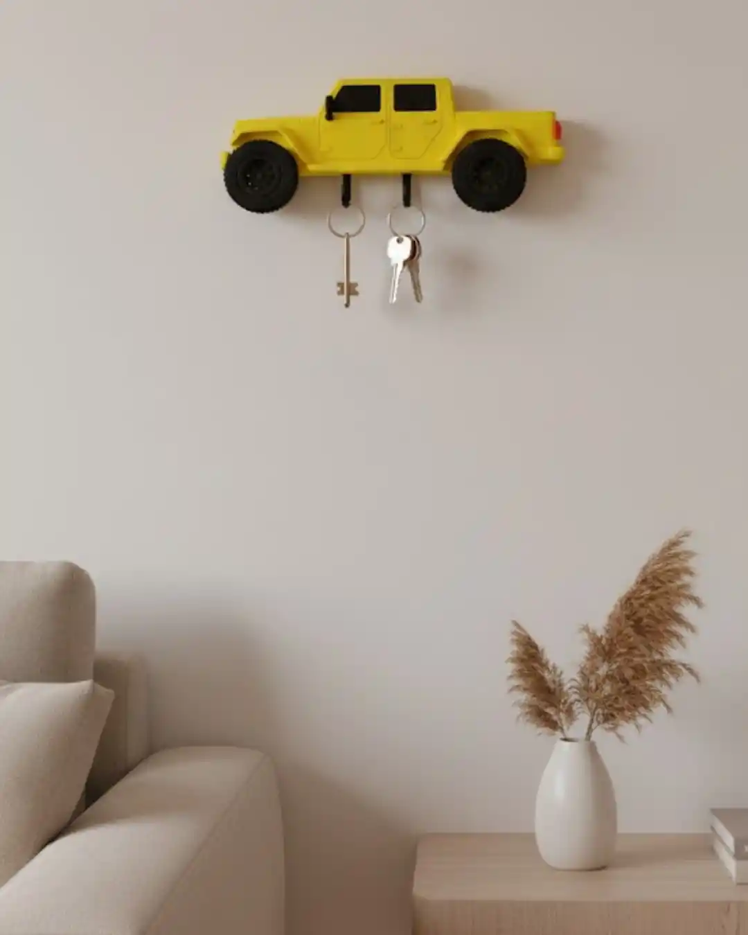 Bu duvar anahtarlığı, araba tasarımıyla otomobil tutkunlarına hitap eden özel bir dekoratif üründür. Anahtarları kolayca asmaya uygun yapısı sayesinde hem düzen sağlar hem de es bir görünüm kazandırır. Ev girişlerinde, koridorlarda veya çalışma alanlarında rahatlıkla kullanılabilir. Minimal tasarımı sayesinde farklı dekorasyon stilleriyle uyum sağlar.