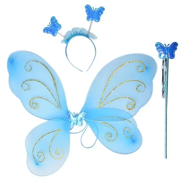 Kelebek Kanadı Tacı Asası Mavi RenkÇocuklarımız bizim için ömürlük kelebeklerdir. Fakat kanatları eksiktir. Bu sevimli kanatlarla gerçek kelebekler gibi olacak. Ürün içeriği : 1 adet kanat1 adet taç1 adet asaçocuklar için uyumludur