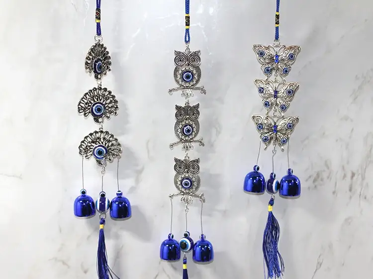 METAL NAZAR BONCUĞU ÇAN MODEL 21Ürün ÖzellikleriMetal Nazar Boncuğu Çan Model 21, estetik tasarımı ve nazar boncuğu detaylarıyla dikkat çeken özel bir dekoratif aksesuardır. Metal malzemeden üretilmiş dayanıklı yapısı sayesinde uzun ömürlüdür. Nazar boncuğu figürü, kötü enerjilere karşı bir koruma sembolü olarak bilinir ve rüzgarla birlikte huzur verici bir ses yayarak ortamınıza mistik bir hava katar. Kapı süsü, balkon, bahçe ve iç mekan dekorasyonu için ideal bir üründür.Paket İçeriği1 Adet Metal Nazar Boncuğu Çan
