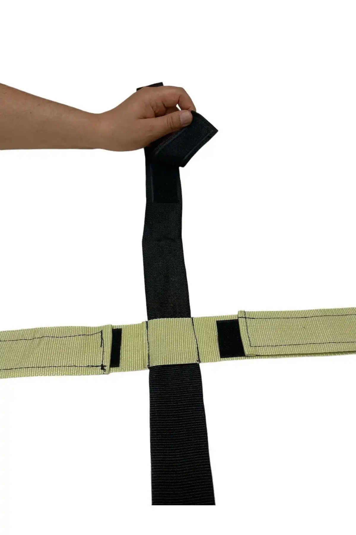 Örümcek Bağlama tipi emniyet kemeri omurga tahtaları için geliştirilmiş bir sistemdir. Yaralıyı göğüs, batın, kalça ve üst ve alt bacak hizasında kavrayarak sabitleme işleminde kullanılır.