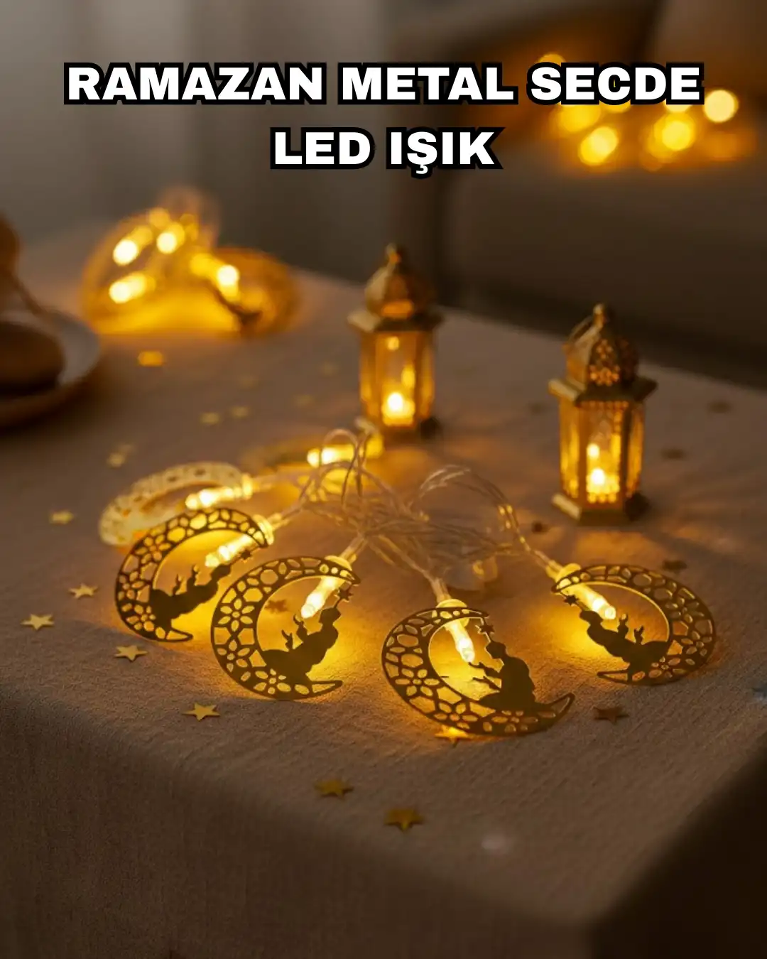 Ramazan ayının manevi değerlerini yansıtan ay içinde secde eden adam figürlü LED peri ışığı, es tasarımıyla dikkat çeker. İnce metal ay formu ve sıcak LED ışığı, dekorasyona huzur ve dinginlik katar.Sıcak beyaz LED aydınlatma, göz yormayan yapısı sayesinde uzun süreli kullanıma uygundur. Ev dekorasyonu, çocuk odası ve Ramazan köşelerinde ideal bir ambiyans oluşturur.Pilli kullanım özelliği ile priz gerektirmeden kullanılabilir. Taşınabilir ve hafif yapısı sayesinde dekorasyonda esneklik sağlar.Ramazan için anlamlı, şık ve kullanışlı bir dekoratif LED ışık arayanlar için ideal bir üründür.