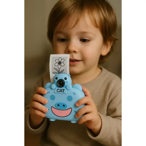 KAMERALI FOTOĞRAF YAZICISI MAVİ RENKÜrün ÖzellikleriKameralı fotoğraf yazıcısı, çocukların yaratıcılığını eğlenceli bir şekilde destekleyen sevimli tasarımıyla dikkat çeker. 2.0 inç IPS ekranı sayesinde çekilen fotoğraflar net bir şekilde görüntülenebilir. 360 derece dönebilen lensi farklı açılardan çekim yapma imkanı sunar. 1080P çözünürlük ile kaliteli fotoğraf çekimi yapabilir. 1200 mAh bataryası uzun süreli kullanım sağlar ve TYPE-C şarj girişi ile hızlı şarj edilebilir. Maksimum 32GB TF kart desteği sayesinde bolca fotoğraf saklanabilir. 2 yıl garantili bu ürün, hem pratik hem de eğlenceli bir kullanım sunar.Paket İçeriği1 adet Kameralı Fotoğraf Yazıcısı Mavi Renk