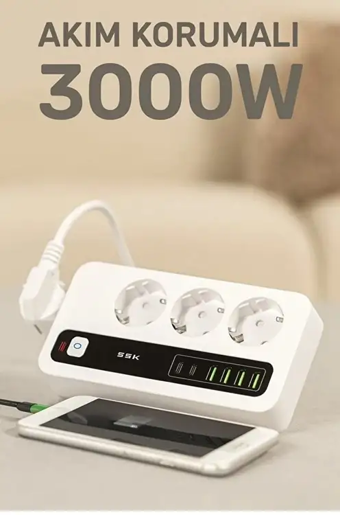 Ev ve Ofis İçin Akıllı Çoklu Priz 7 Girişli