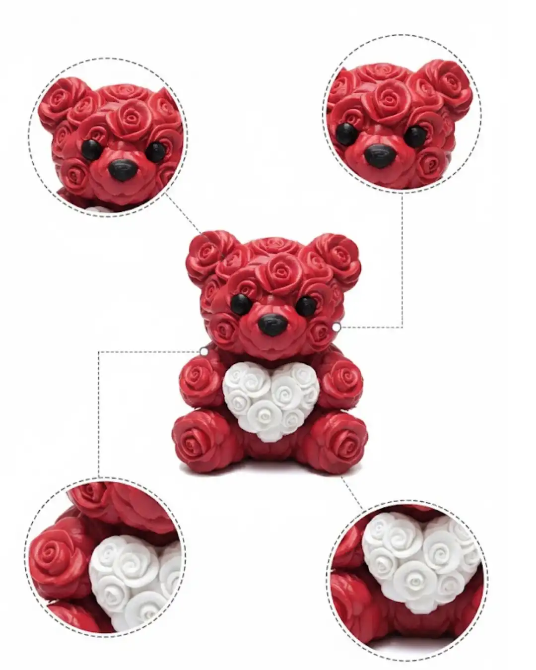 Romantik tasarımıyla öne çıkan 3D kalp ayıcık, 10 cm kompakt ölçüsü ile her alana uyum sağlar. Gül desenli yüzey yapısı ürüne es bir görünüm kazandırır.Sevgi temalı dekor arayanlar için ideal bir tercihtir.