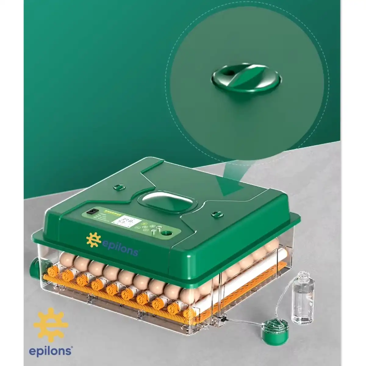 • Epilons EP-120 Yumurta Kapasiteli Tam Otomatik Kuluçka Makinesi, Yeni Nesil Harici Suluklu, Dijital Nem ve Sıcaklık Göstergeli.