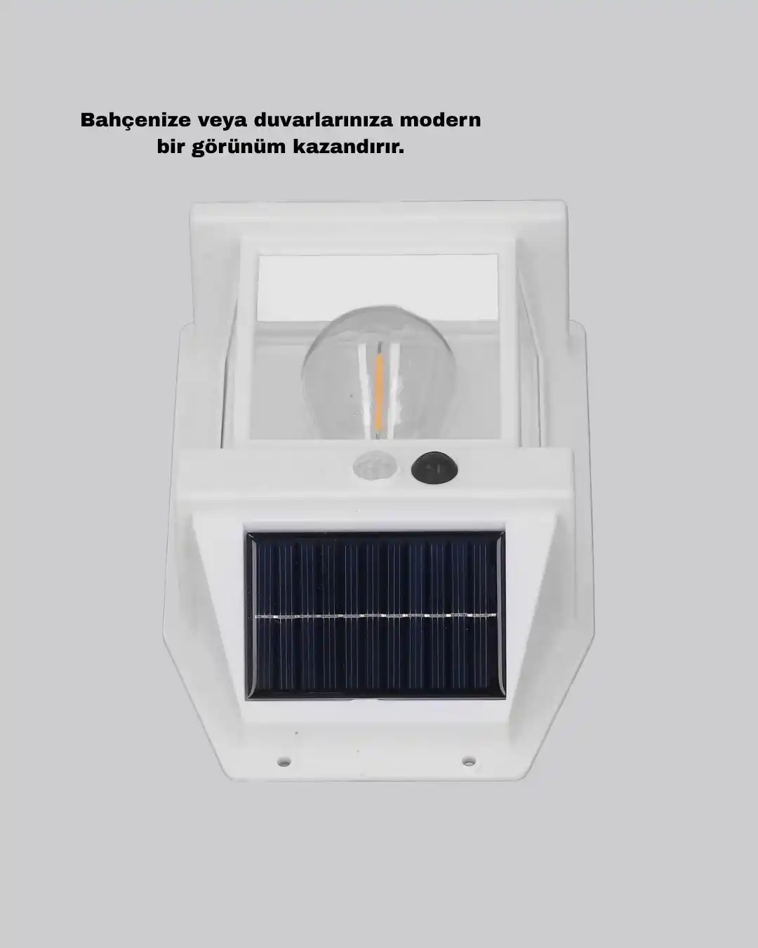 Güneş Enerjili Dış Mekan Sensörlü Duvar Lambası, çevre dostu tasarımı ve yüksek verimliliğiyle dış mekan aydınlatmasında mükemmel bir çözümdür.Kablolama gerektirmeden, doğrudan güneş ışığıyla şarj olur ve 1800 mAh dahili bataryası sayesinde gece boyunca otomatik olarak yanar.Üç farklı çalışma modu sayesinde kullanım alanınıza göre özelleştirilebilir: Hareket sensörlü mod: Sadece hareket algılandığında yanar. Işık sensörlü mod: Gün batımında otomatik yanar, gün doğumunda kapanır. Sabit ışık modu: Sürekli aydınlatma sağlar.120°’lik geniş algılama açısı ve 8 metreye kadar hareket mesafesiyle, bahçe, garaj, veranda, çit ve duvar aydınlatması için idealdir.IP65 su geçirmez ABS gövde, yağmur, kar ve yüksek sıcaklıklara karşı dayanıklılık sağlar.Hem dekoratif hem fonksiyonel yapısıyla bu güneş enerjili lamba, enerji tasarrufu sağlayarak güvenli ve es bir ortam yaratır.