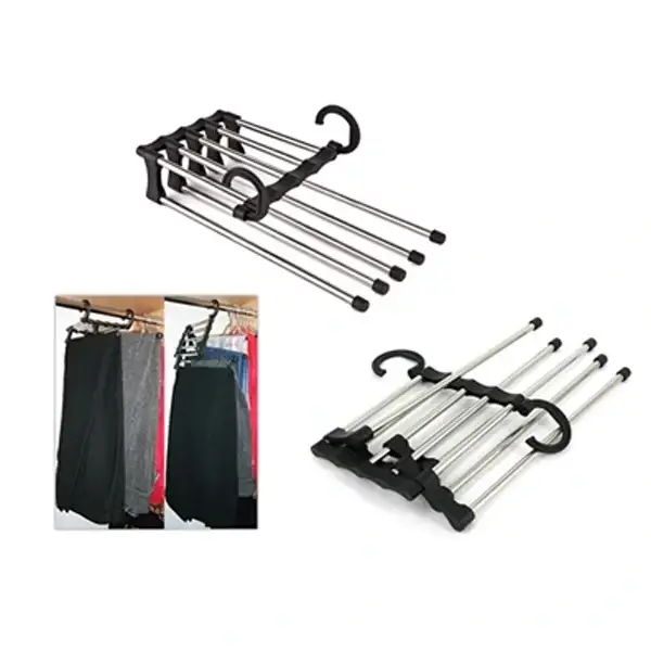 HAREKETLİ PANTOLON ASKISI 5 IN 1HareketliPantolon Askısı ile beş adet pantolonunuzu organize edebilir, dolaplarınızıdaha düzenli bir hale getirebilirsiniz.HareketliPantolon Askısı, diğer askılardan bir adım önde olan bir üründür, her askı biryer kaplar, her askı bir pantolonu organize ederken, hareketli pantolon askısıbir askılık yer ile tam beş pantolonu düzene sokar.HareketliPantolon Askısı ile gardropunuzda daha geniş bir kullanım alanı açabilirsiniz !Kemerler,eşarplar ve büyük fularlarınız için de kullanabileceğiniz Hareketli Askılıkoldukça fonksiyonel bir üründür. HareketliPantolon Askısı Ürün ÖlçüleriÜrünboyutu: 15 cm. * 33,5 cm.Kısakrom askı boyu: 31 cm.Uzunkrom askı boyu: 49 cm. HareketliPantolon Askısı Ürün ÖzellikleriKrommalzemedene mamüldür.Dayanıklı,sapasağlam bir üründür.Kromçubuklar arası hareketli mekanizma vardır. HareketliPantolon Askısı Paket İçeriği1adet fonksiyonel askılık