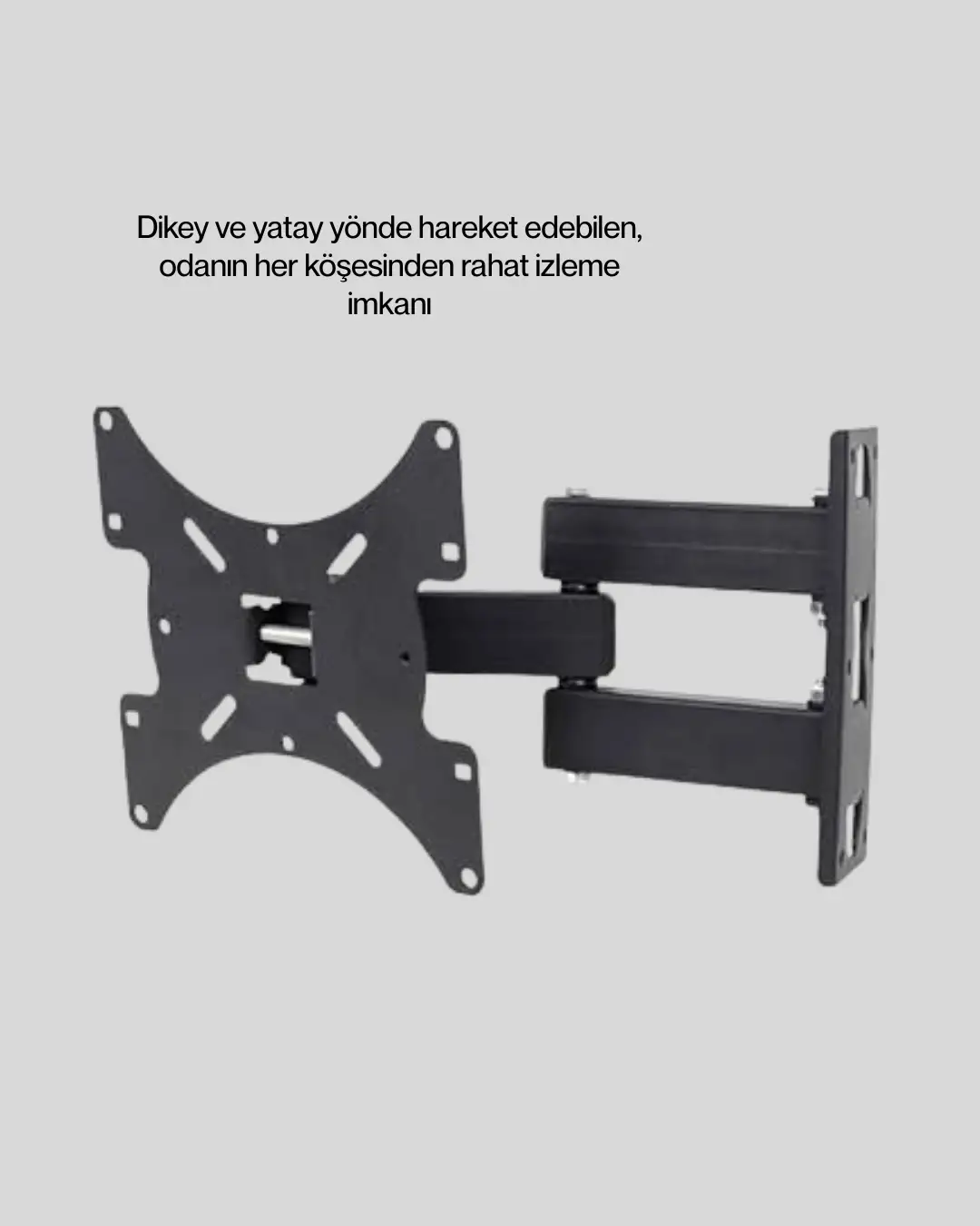 Hareketli TV duvar askı atı, 22–49 inç (56–124 cm) arası LED ve LCD televizyonlar ile tam uyumlu olacak şekilde tasarlanmıştır. Dikey ve yatay hareket kabiliyeti sayesinde izleme açınızı kolayca ayarlayabilir, daha konforlu bir seyir deneyimi elde edebilirsiniz. Modern ve sade tasarımı, ev ve ofis ortamlarında es bir görünüm sunar.Dayanıklı metal gövdesi sayesinde televizyonunuzu güvenle taşır. Kolay montaj özelliği ile kullanıcı dostudur. Her marka LED ve LCD TV ile uyumludur.
