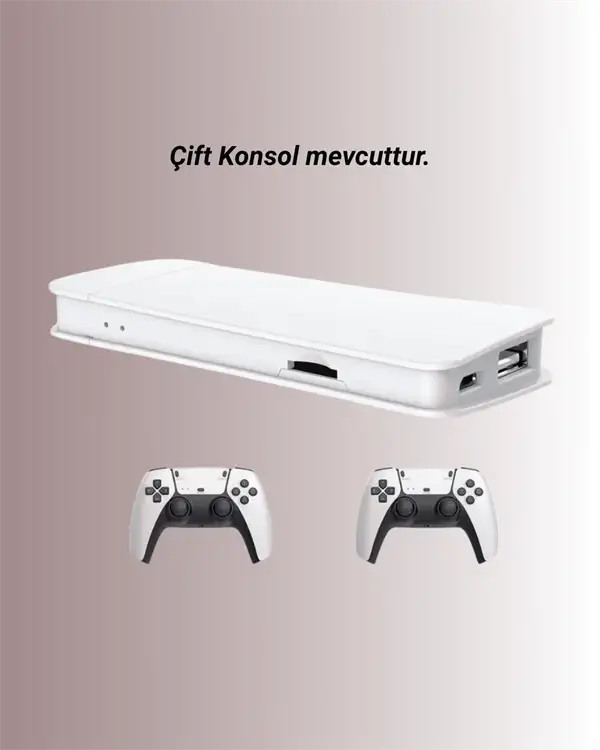 Cihazla birlikte gelen çift kablosuz gamepad, modern PS5 tasarımını andıran es görünümüyle dikkat çeker. Kablosuz olması sayesinde oyun oynarken kablo karmaşasına son verir, koltukta, yerde ya da yatakta özgürce oyun oynayabilirsiniz. Ergonomik yapısı sayesinde uzun süreli kullanımlarda dahi konforlu bir tutuş sağlar. İki kişiyle keyifli rekabetli oyunlar da mümkün.