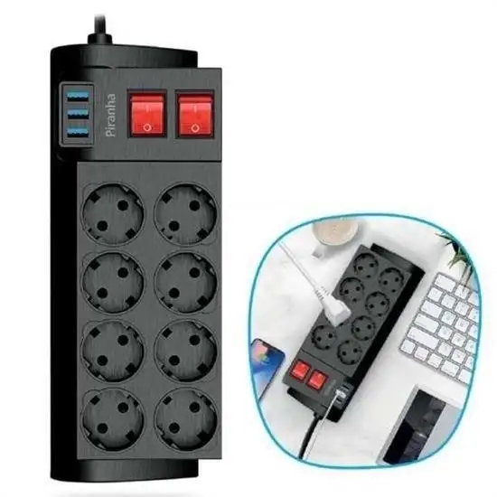 8 adet priz girişi ve 3 adet USB kablo girişi