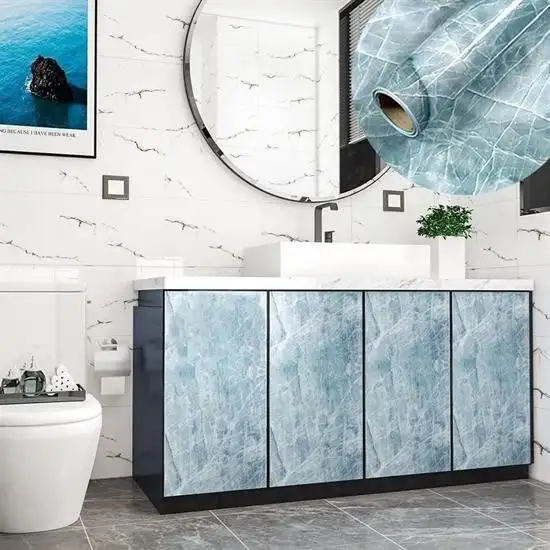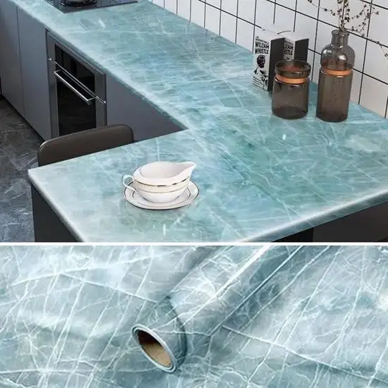 Mermer desenli kaplama duvar kağıdı yapışkanlı folyo ürünü su geçirmez ve ateş almaz özelliğe sahiptir