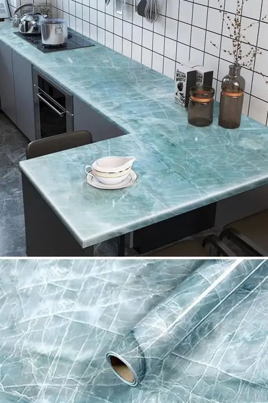 Granit mermer görünümlü yapışkan duvar kağıdını istenen yüzeye yapıştırabilirsiniz