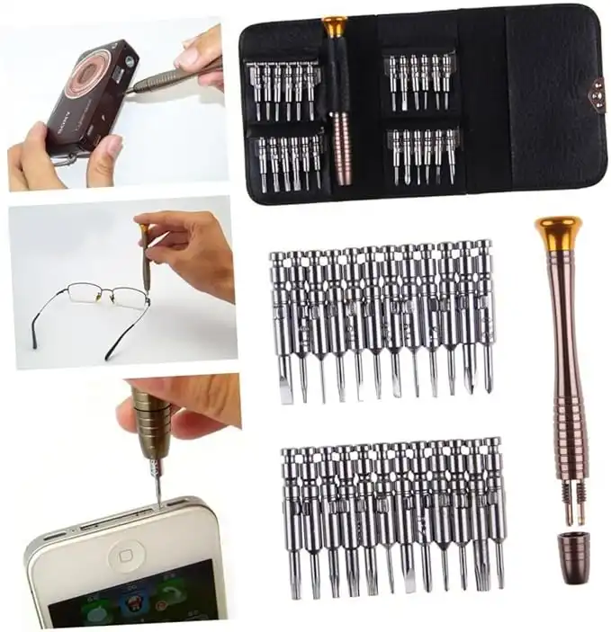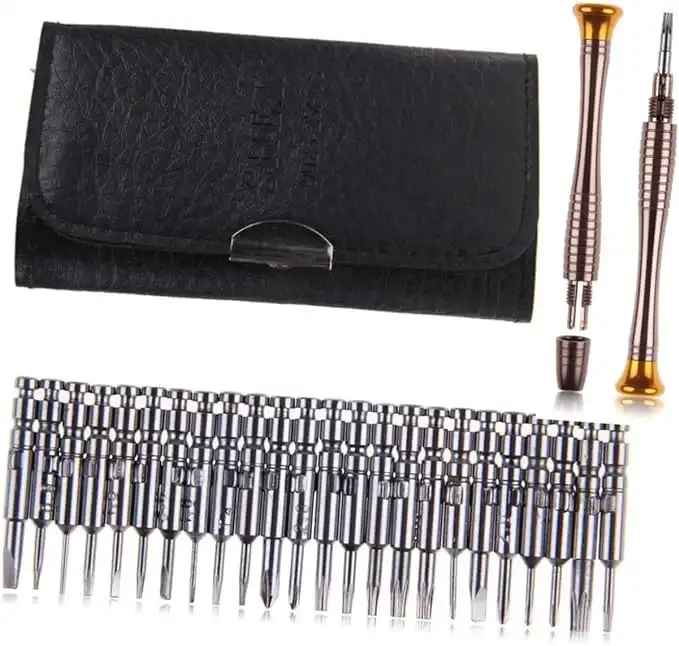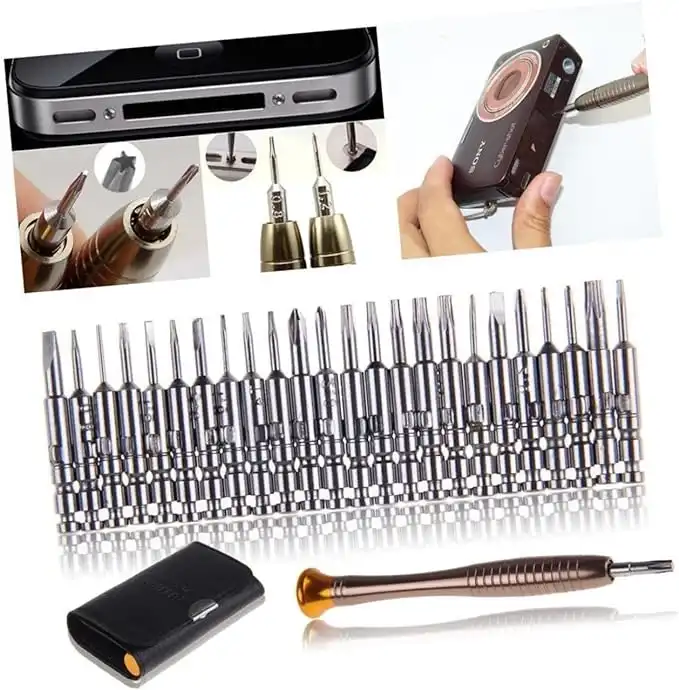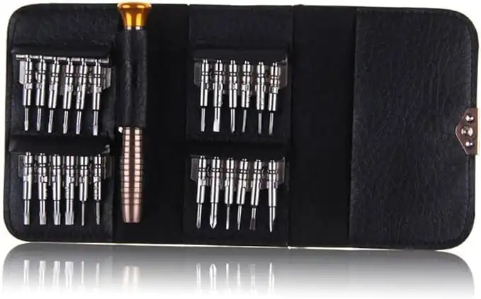 MİNİ CÜZDAN TORNAVİDA SETİMini Cüzdan Tornavida Seti: Küçük, Pratik ve Güçlü!Mini Cüzdan Tornavida Seti, hassas elektronik cihazlar ve cep telefonları gibi küçük tamiratlar için ideal bir çözümdür. Set, 24 adet tornavida ucu ve 1 adet tornavida kaleminden oluşan toplam 25 parçadan oluşmaktadır. Kompakt boyutlarıyla (10.5 cm x 6.5 cm x 2 cm) her yere kolayca taşınabilir ve her zaman elinizin altında bulundurabilirsiniz.Dayanıklı çıtçıtı sayesinde cüzdan sağlam bir şekilde kapanır ve açılmaz. Tornavida uçları, cüzdanın içinde güvenli bir şekilde sabitlenmiştir ve yerinden çıkmaz. Sadece 112 gram ağırlığında olan bu set, hafifliği ve taşınabilirliği ile kullanım kolaylığı sunar.Mini Cüzdan Tornavida Seti, profesyonel kullanıcılar için geliştirilmiş olup, hassas elektronik ürünlerin ve cep telefonlarının tamiratında en iyi yardımcınız olacak şekilde tasarlanmıştır. Ergonomik tasarımı ve yüksek kaliteli malzemeleri ile uzun ömürlü kullanım sağlar. Kompakt ve pratik bu set ile her türlü tamirat işlemini kolaylıkla gerçekleştirebilirsiniz.Paket İçeriği1 adet mini cüzdan tornavida seti